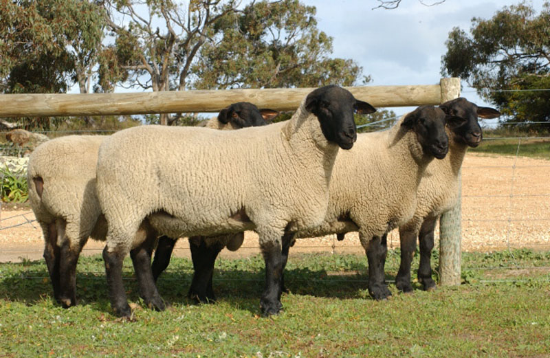 The Suffolk is a British breed of domestic sheep. It originated in the late eighteenth century in the area of Bury St. Edmunds in Suffolk, as a result of cross-breeding when Norfolk Horn ewes were put to improved Southdown rams. It is a polled, black-faced breed, and is raised primarily for its meat. It has been exported to many countries, and is among the most numerous breeds of sheep worldwide.
